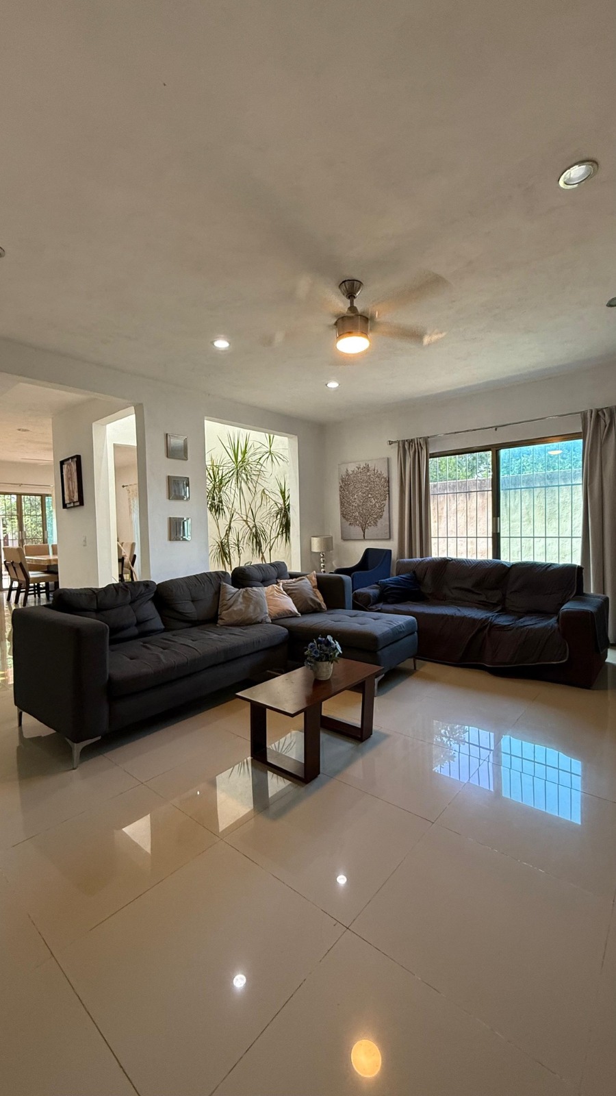 Sala y comedor con techos altos